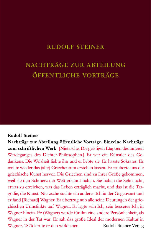 Nachtragsband zum Vortragswerk: Öffentliche Vorträge. Einzelne Nachträge zum schriftlichen Werk